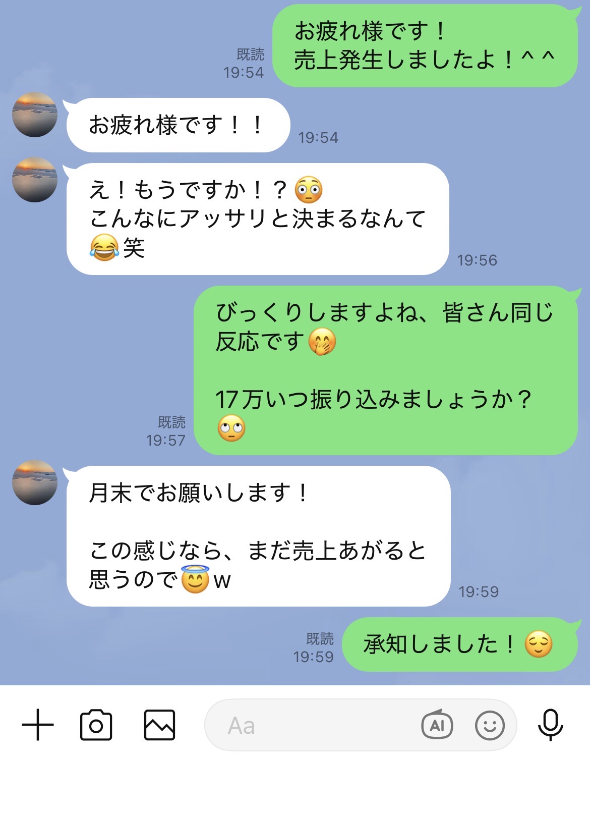 集客に悩んでいる人を僕の公式LINEに送り込むだけ。説明もクロージングも全部僕がやります。成約すれば報酬として17万を入金させていただきます。
